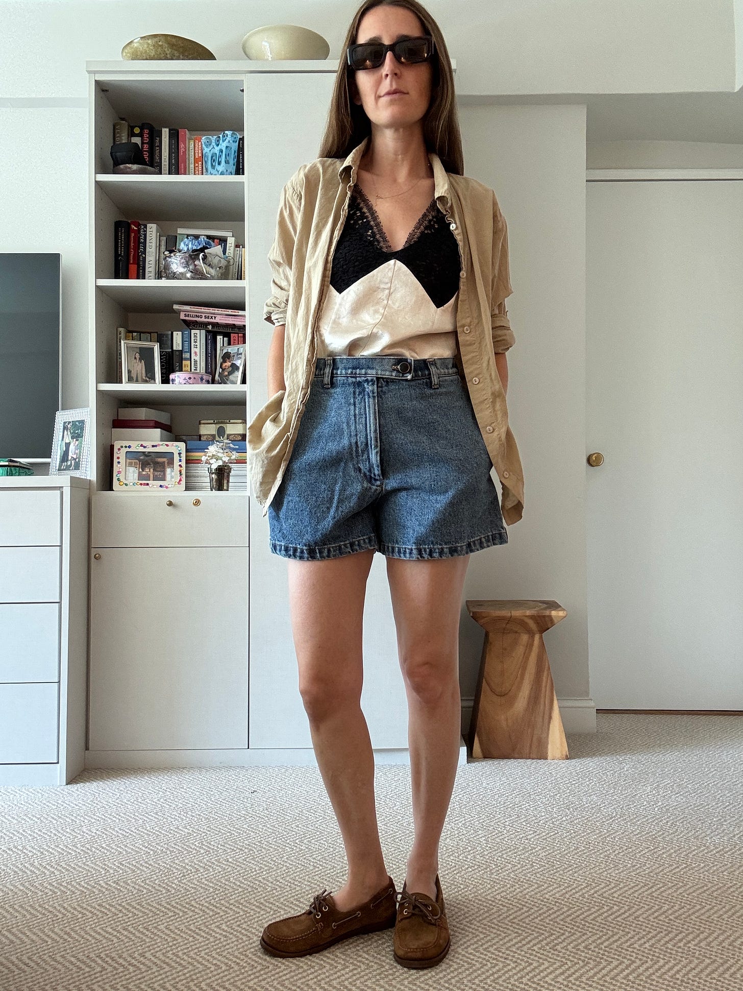 Beyond the whole temperature thing, I kept obsessing…what if everyone is basically in cocktail attire? Or I pick something too fancy and everyone else is in shorts!? I needed something that could toe the line no matter what the weather channel (and the rest of the guest list) threw at me. After an obscene amount of scrolling (quiz me on the website, I dare you!) I settled on a khaki linen button down and cut off khaki shorts. Tailored, chill, not denim, not floral. A chameleon Americana-semi-fancy-summery luncheon outfit if there ever was one.