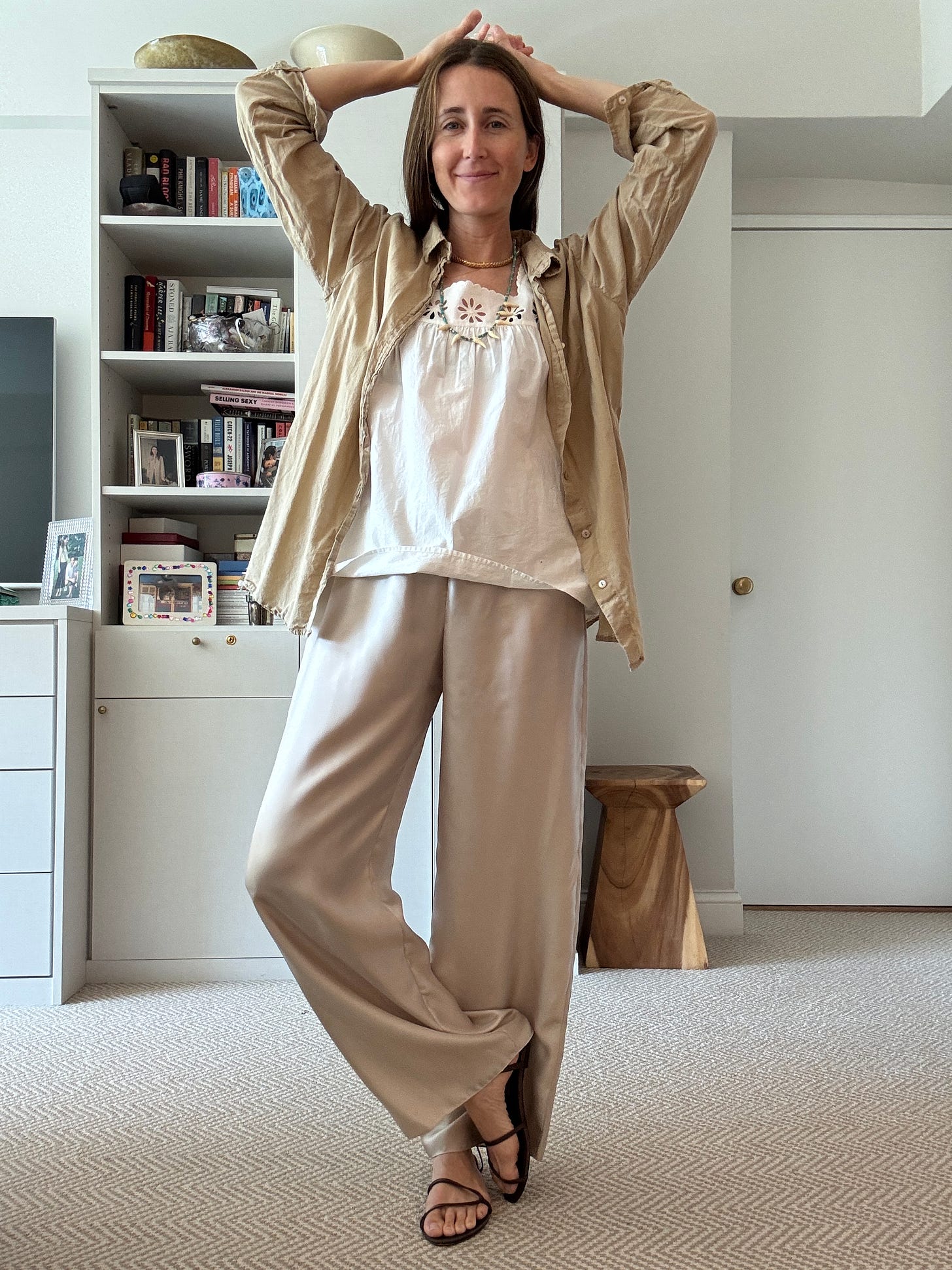 As a sweatshirt replacement with knock arounds. A gym short, a satin pj pant you want to dress up a little bit. It just looks a little more styled…while somehow maintaining the “non-styled” vibe.