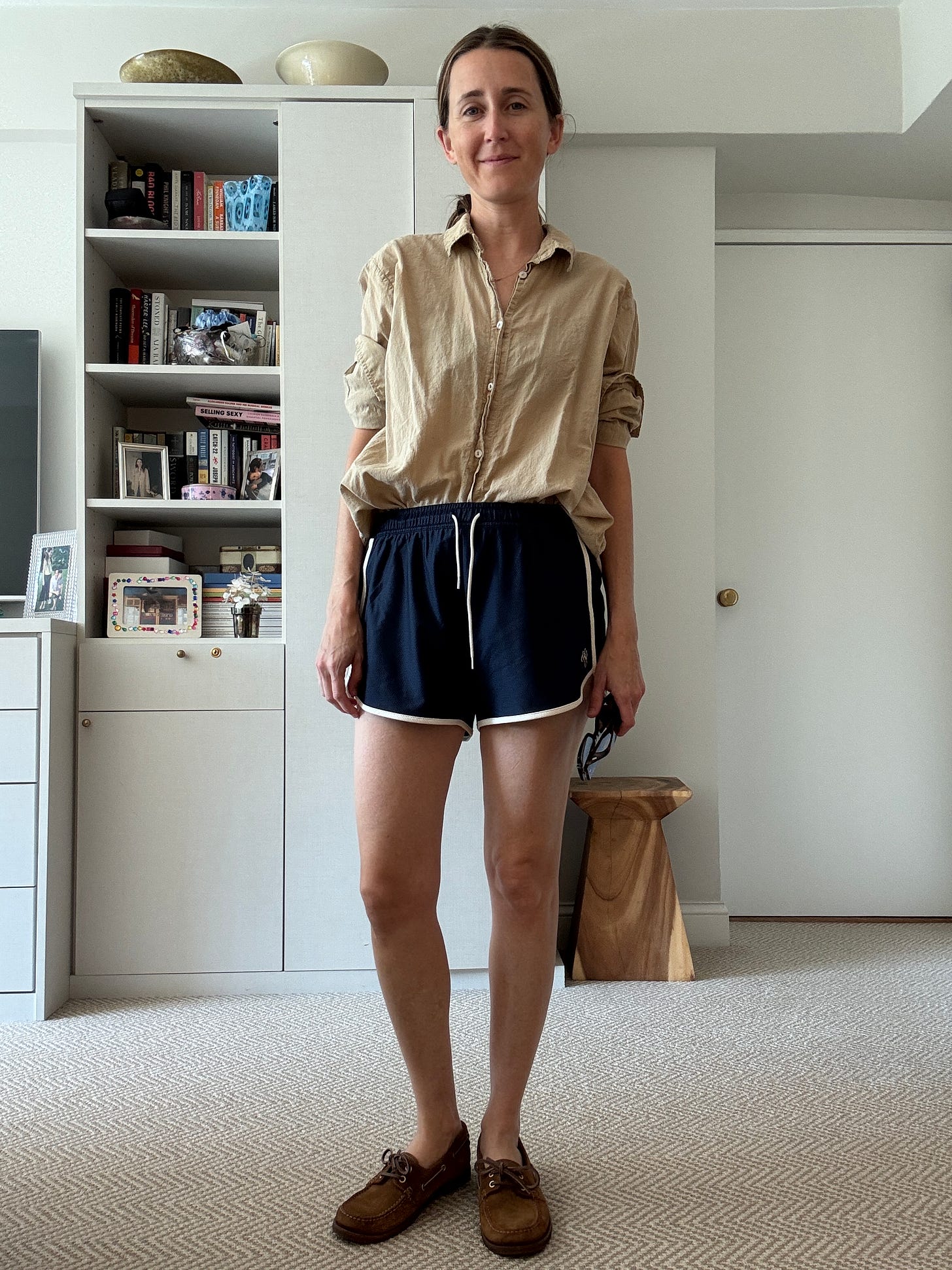 I gotta say, too, it might just be more of an essential closet hero than a white button down. Controversial?! Think about it - khaki is less sheer than white, less prone to showing stains and just as easy (maybe even easier) to pair. I definitely have felt more of a gravitational pull to any and all of these over any white shirts hanging in my closet this summer.