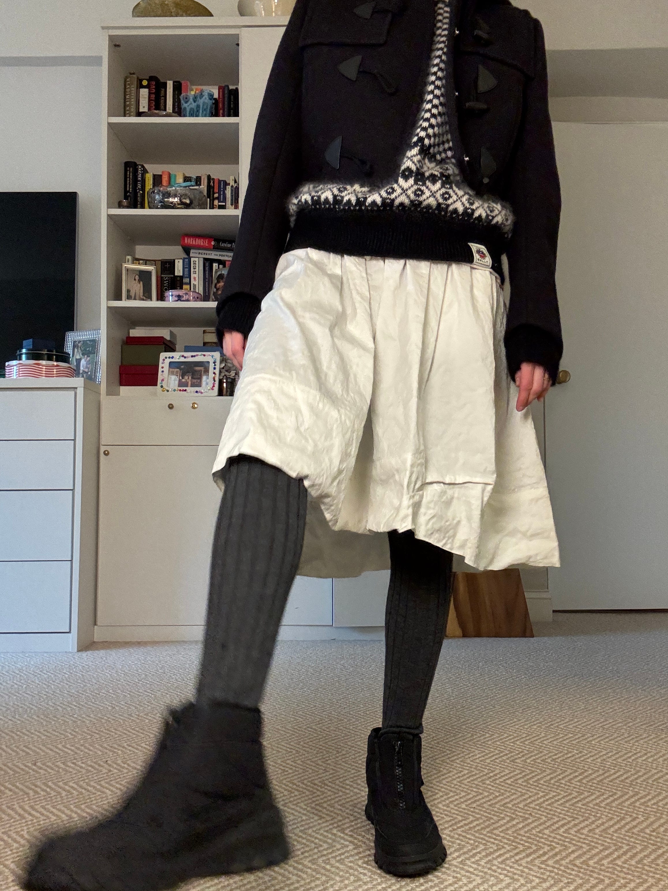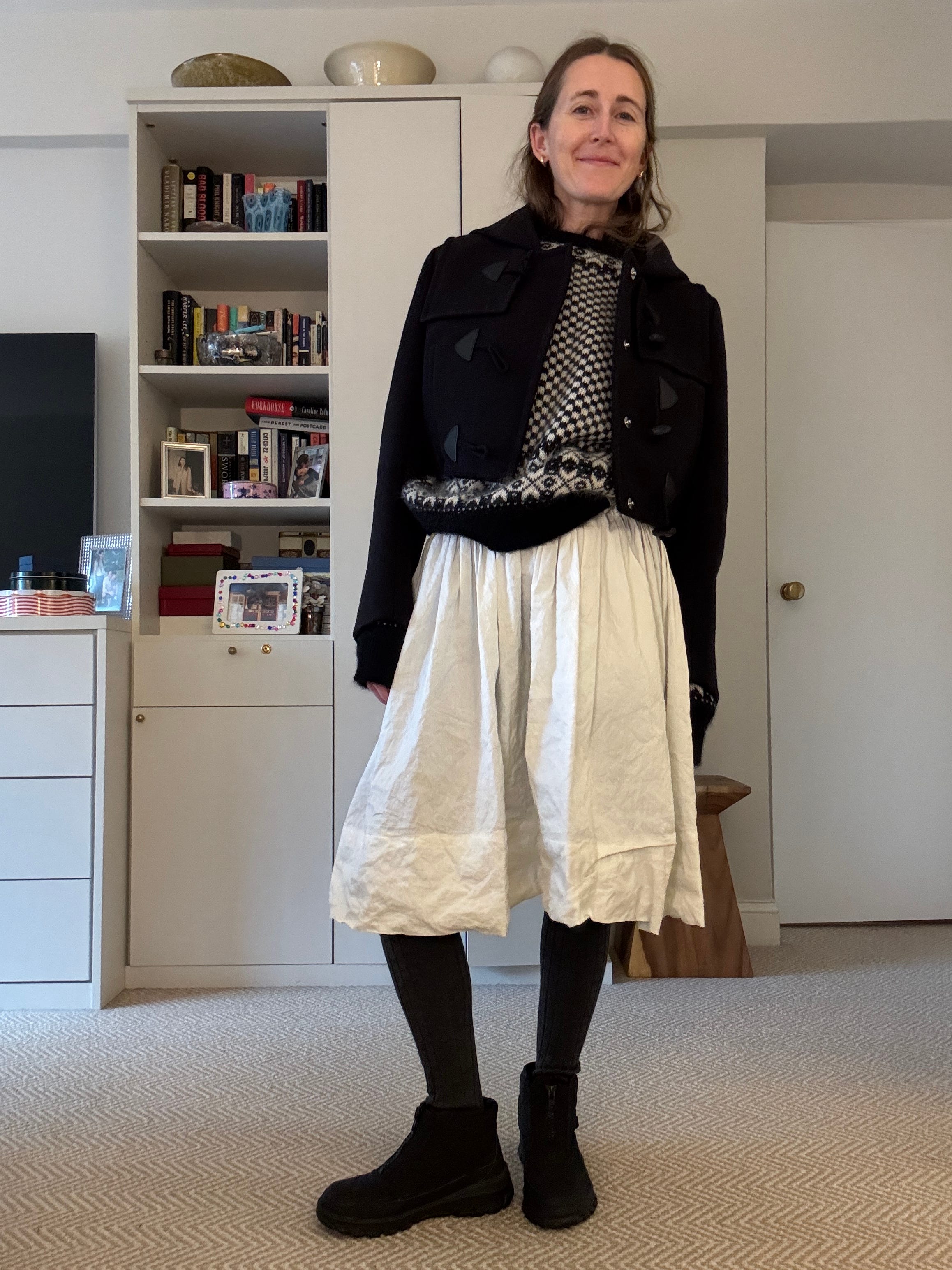 Just here to say: that outfit with the full skirt ? Also works with a wool pencil skirt. Houndstooth or plaid or now that I am thinking about it with any sort of Burberry kilt…