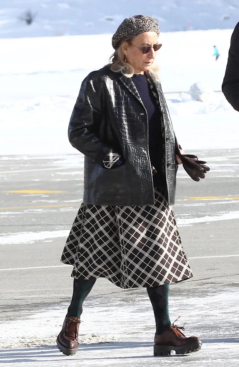 And then of course, god forbid we go one whole newsletter without looking to our north star…Mrs. Prada. She would definitely pair these boots with wooly tights, a full skirt and excellent boiled wool coat. So for those days when you don’t want to wear your cozy layers anymore, know that these boots can GET DRESSED!