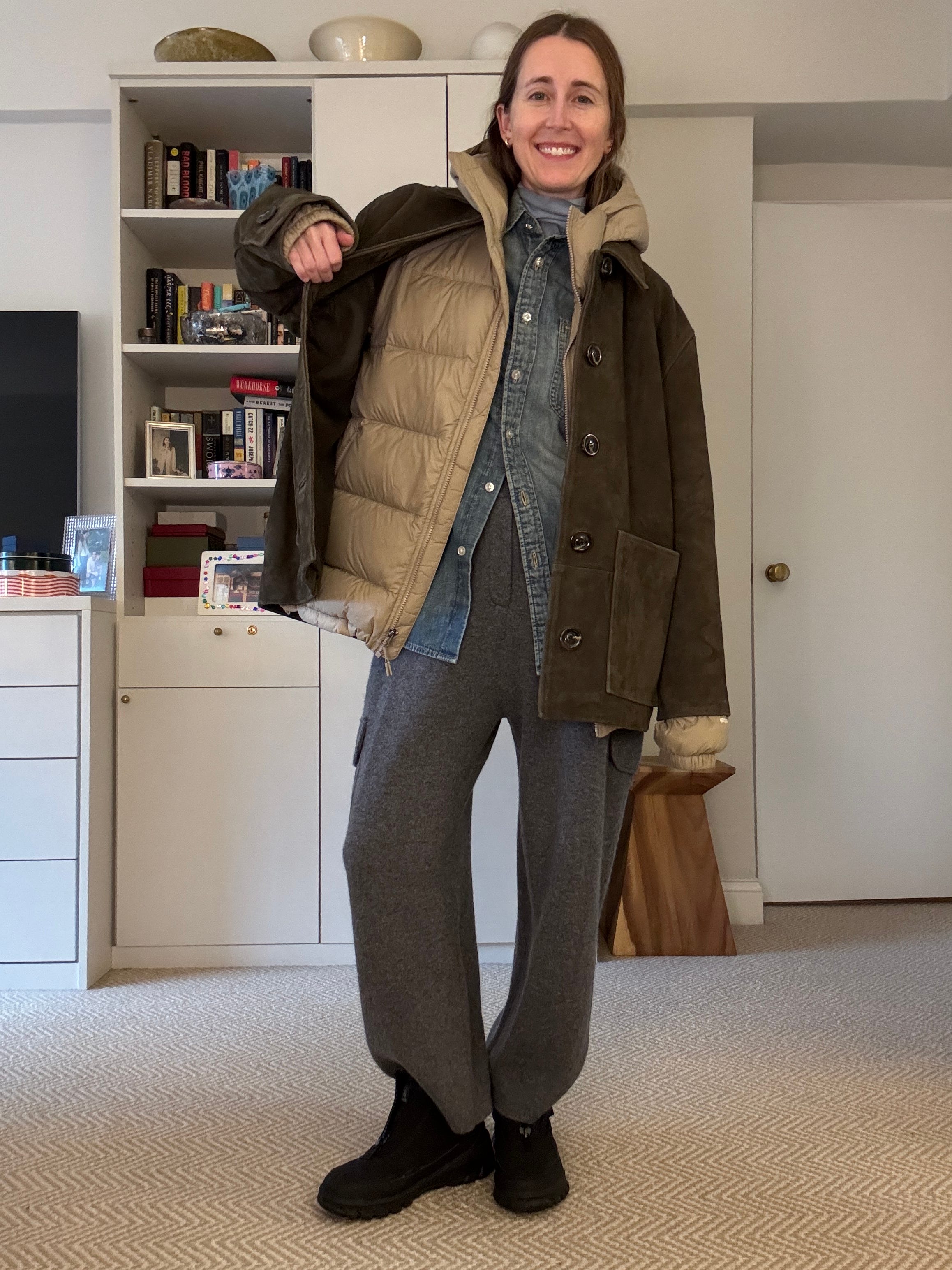 I’ve now been wearing them for six weeks: for school drop off, for to-and-from city schlepping, ski weekends and the occasional mornings when snow graces Cedar Hill with some fresh baby pow. Below, five outfits I’ve worn for daily life that prove their versatility and that our cute outfits need not wait until spring.