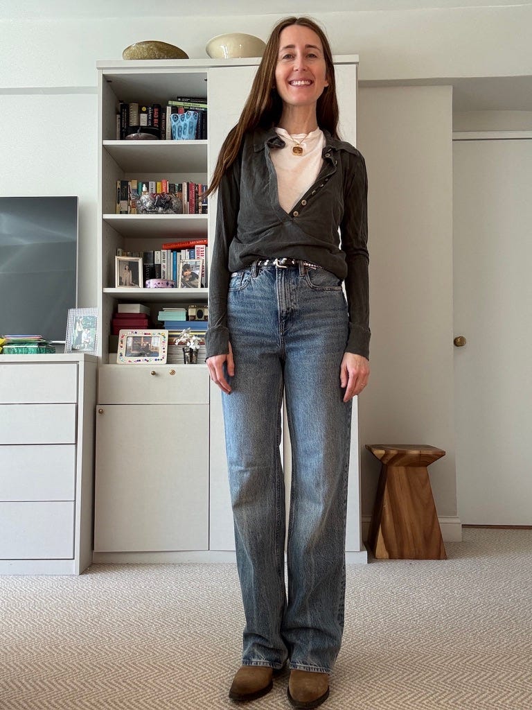 Instead of my usual crewneck base layers lately, I’ve been reaching for this faded black henley unbuttoned all the way down. I wore it over the holidays to a x-mas party with that crazy sequined Alaia cropped top and silk pants. It makes shiny things feel a bit “easier” for a decadent house party. For everyday, I’ve been throwing it over a white tee with jeans and cowboy boots, completely undone.