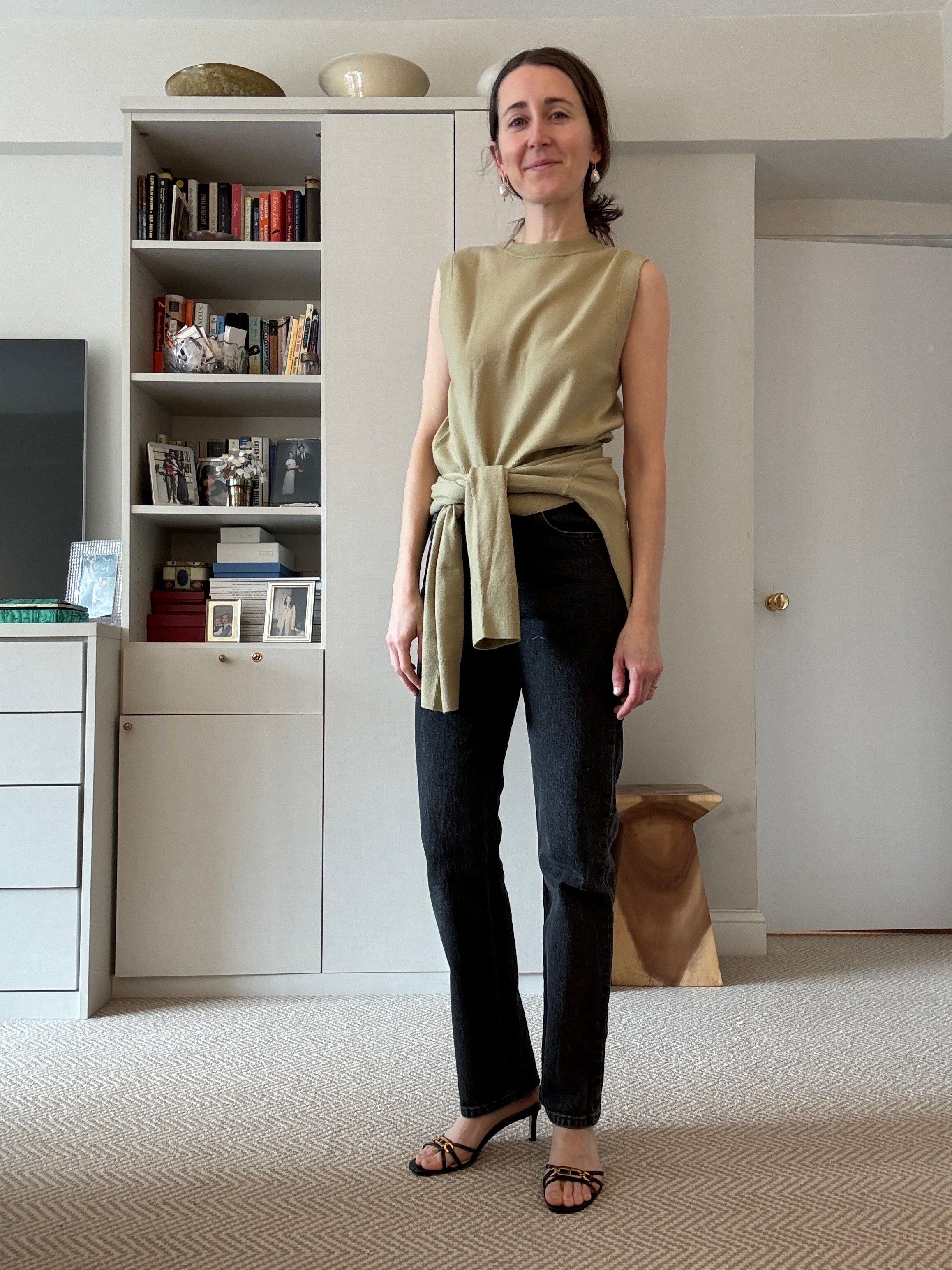 And finally, number five. I was just going to call this “The Perfect Tank” but then I thought, we aren’t basic! :) This tank is so great though, really! And don’t worry, it also comes in khaki. But the black was so good I had to veer (just a little) from our theme. This tank is not too thin, so it can be worn on its own but is also the perfect cut to layer while still being seen. It’s bouncy, super soft, opaque. And most importantly, it is simultaneously slouchy and slightly narrow. Meaning, I get the look without having to worry about it falling off my shoulders! My biggest issue with anything in more of a scoop shape is that it just doesn’t stay up. Or it’s cut so wide it shows my bra, ugh. I love her! I’ve been wearing her for a few weeks under button downs (too cold to wear a button down next to your skin in the winter…which we will be addressing next week!), blazers and even sweaters where you can’t see her. She’s just a great little tank. I’m wearing an XS.