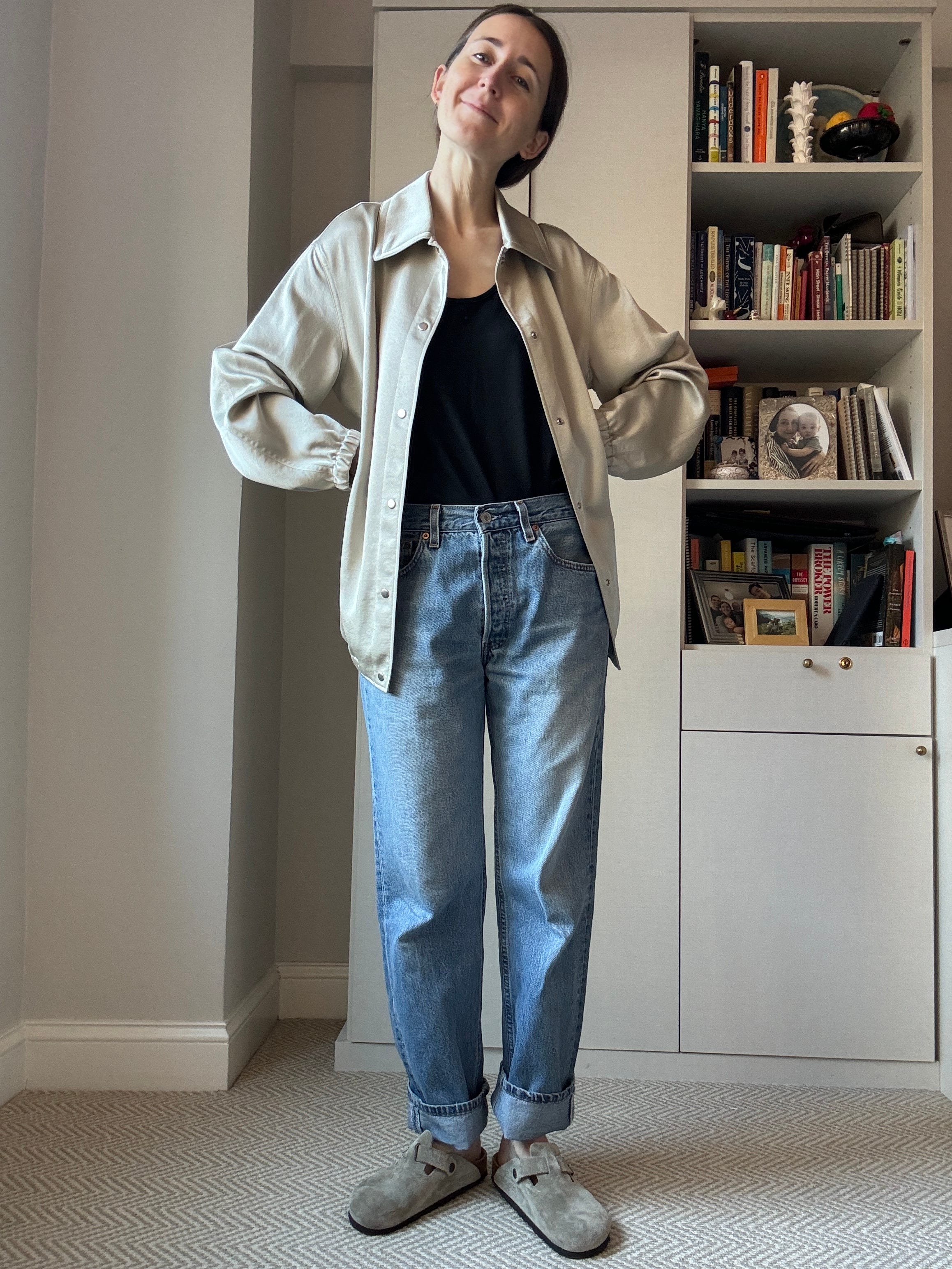 Coastal grandmother. Quiet Luxury. Blah blah. How many times can we coin simple, good clothes into something new for hashtag value!? And then make us feel like we are feeding into a trend, when really we are just wearing a great khaki shirt dress or perfect tan satin jacket (see below :)) So I would just like to say, IT’S OK TO LIKE NEUTRALS! I have made the executive decision to not feel like a Basic B when I want the tan or cream or black version of something. And it doesn’t have to be more than that. It can just be that they are great and wearable pieces and they don’t need a Tik Tok explainer. Whew! Glad I got that off my chest.